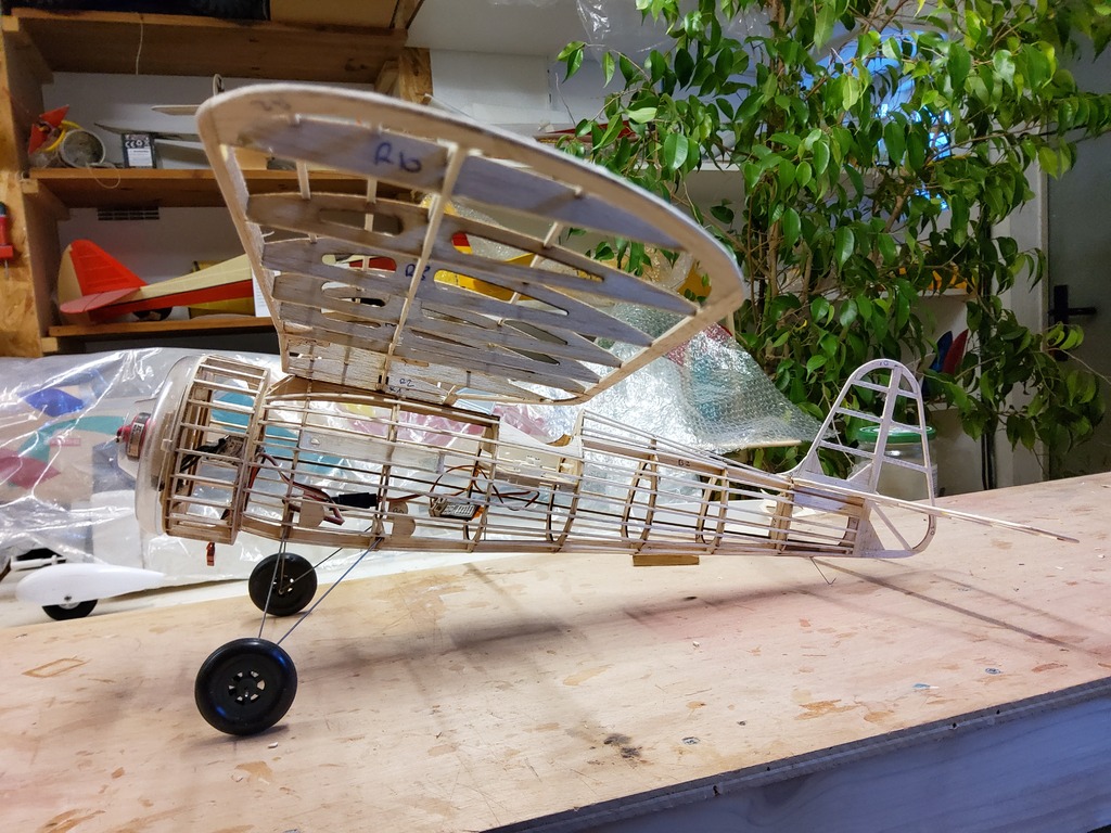 Il s'agit d'une maquette de PZL P11, avion de chasse polonais des années 30. Magnifique structure bois, l'équipement moteur, contrôleur, servos et récepteur est déjà installé. On attend avec impatience les photos du premier vol !