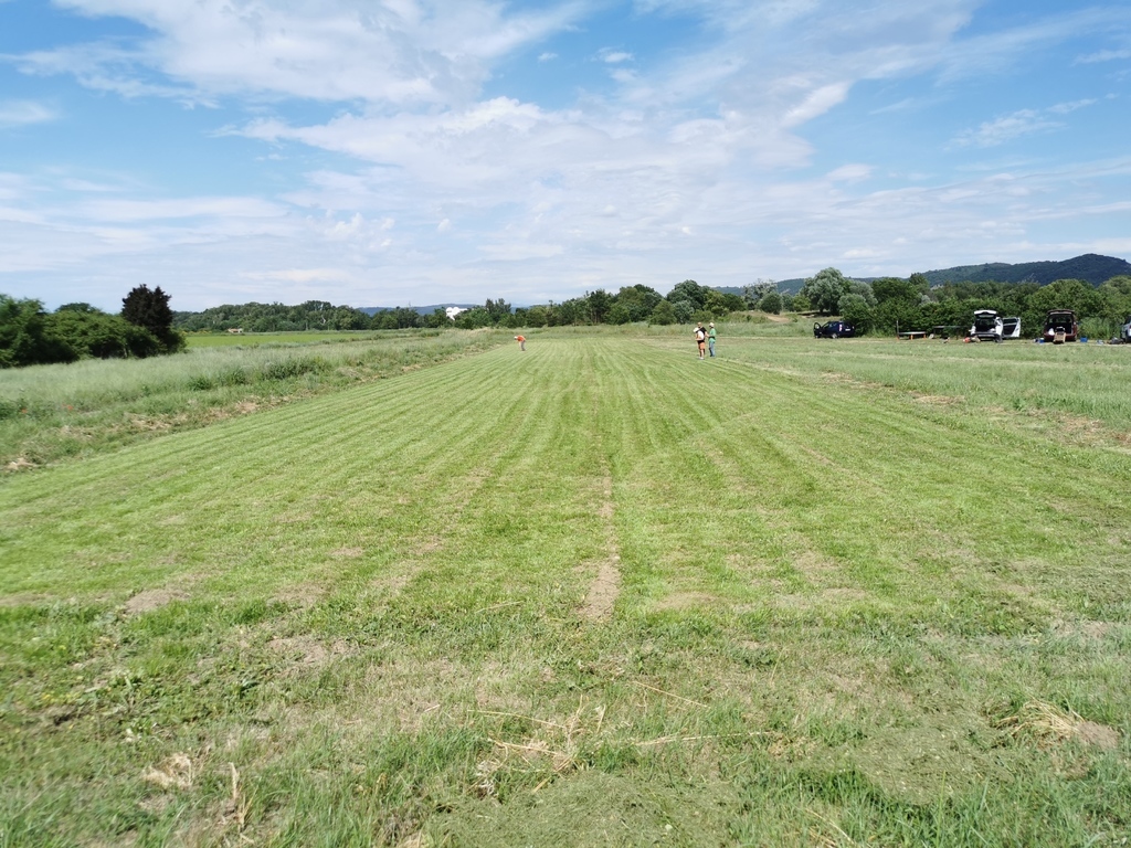 Cet après-midi, c'est avec 4 tondeuses que nous avons terminé la préparation de la piste de 1300m2 (100 x 13m) !!